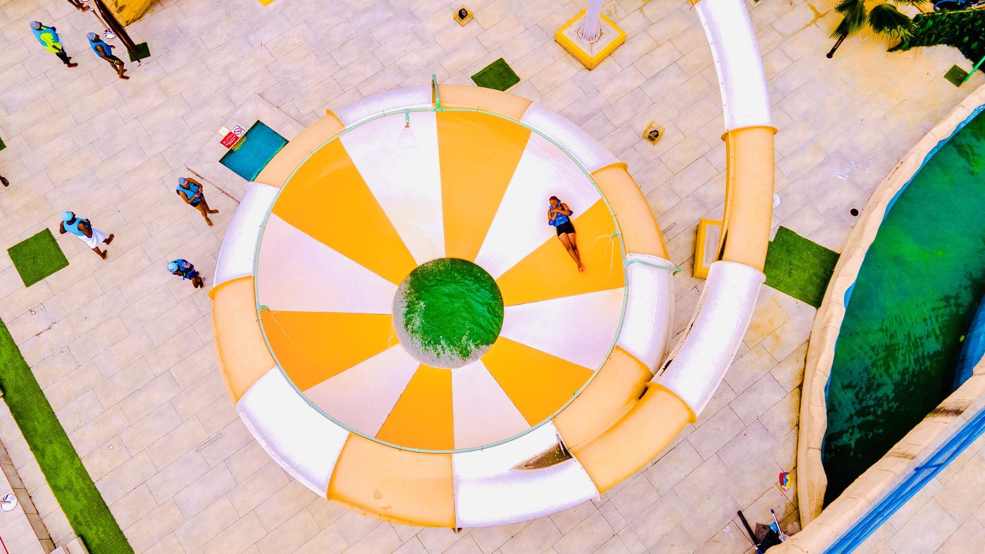 Prepare for a thrilling plunge into the Tornado Space Bowl water slide at our water park. Feel the adrenaline surge as you descend through twisting tubes, picking up speed towards the giant bowl. Experience a heart-pounding moment of weightlessness as you are catapulted into the swirling vortex, spinning and spiraling before dropping into the splash pool below. This gravity-defying adventure guarantees an unforgettable ride that will leave you breathless and craving more.